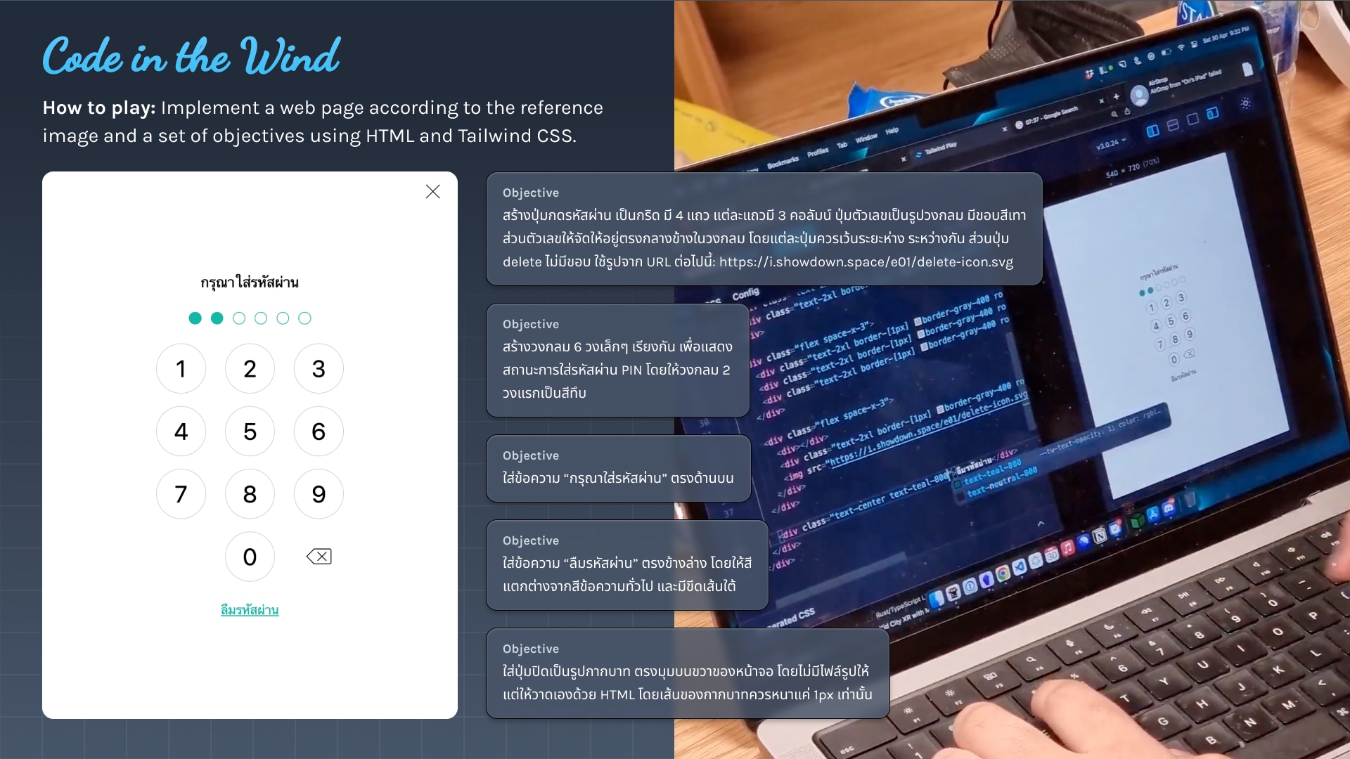 Damn, มาถึงเดือนนี้แล้วก็เข้าร่วมงานแรกในชีวิตเลยนะ ก็คือ Code In The Wind #1 นั่นเอง! เป็นงานที่จัดออนไลน์แต่ก็สนุกมาก ๆ ได้เรียนรู้หลายสิ่งเลย เสียดายเราไม่ได้ชนะหน่ะ 😭 ใครอยากดูรายละเอียดเพิ่มเติมอ่าน บล็อกพี่มิ้น ได้นะ