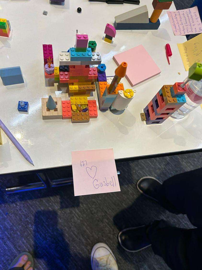 อย่างที่อธิบายไปข้างต้น เราะมีโต๊ะสามโต๊ะ วางไว้แต่ละมุมห้อง แต่ว่าอยู่กลางห้อง (เป็นรูปสามเหลี่ยมอ่ะ เก็ทมะ) โดยแต่ละโลกจะมี GM ของโลกนั้น ๆ (ผมเลือกโลกแฟนตาซีอ่ะนะ) โดยโลกแฟนตาซีของเราเนี่ย GM คือพี่ลีโอ และจะมีจอมมารเป็นพี่กัสเบล โดย GM ทำหน้าที่แบนไอเทมที่ OP เกินไป แต่ไม่ถึงไหนพี่ลีโอบิดหนีไปละ โต๊ะอื่นผมไม่แน่ใจ ของโต๊ะผีนี่มาเป็นบริษัทกับปรัชญาเลย แบบ “ลืมคืออะไร” คมมาก โดยโต๊ะของเราเนี่ย ให้เราสร้างอะไรก็ได้ให้ไปปราบจอมมารกัสเบล (ด้วยเลโก้) ซึ่งไม่ถึง 10 นาที ปราสาทจอมมารพังครับ (สมาชิกท่านใด)